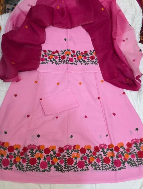 KIAE Pretty Pink Floral Embroidery Rajputi Poshak with Dark Pink Odhni