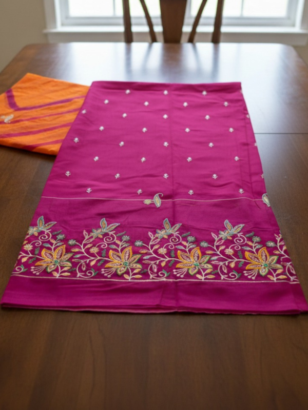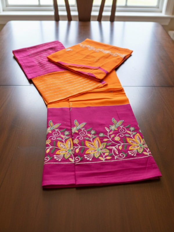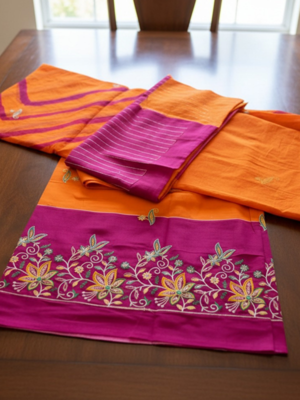 Radiate royal charm with KIAE’s Authentic Rajasthani Rajputi Poshak in Orange & Pink, an exquisite unstitched ensemble that beautifully captures the vibrant essence of Rajasthan. This stunning poshak brings together traditional artistry and timeless elegance, designed for women who cherish cultural heritage with a touch of modern grace.