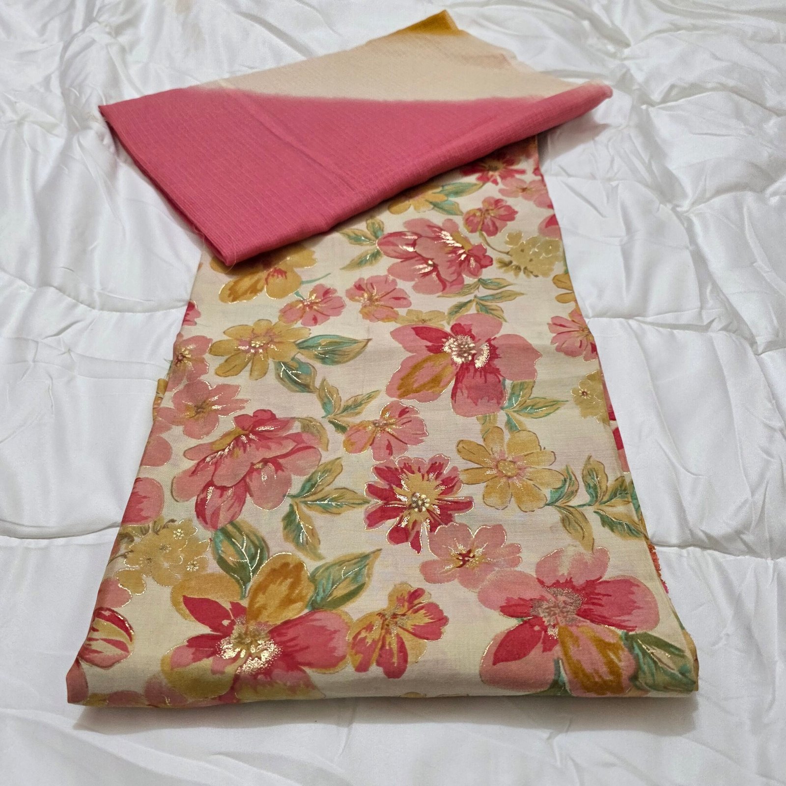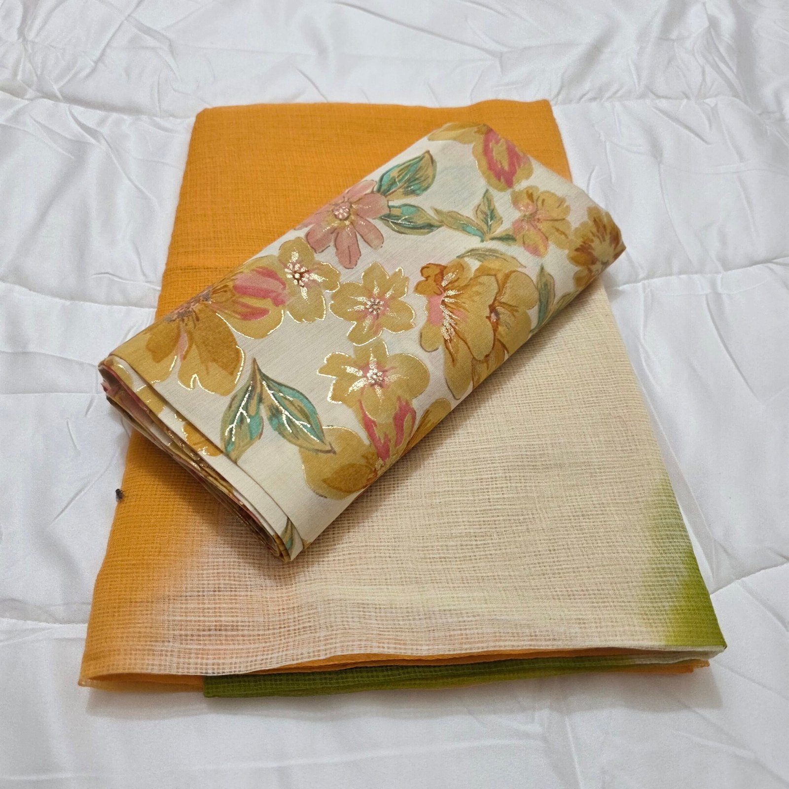 Royal Maslin Silk fabric with Hand-Painted Kota Doriya Odhani
