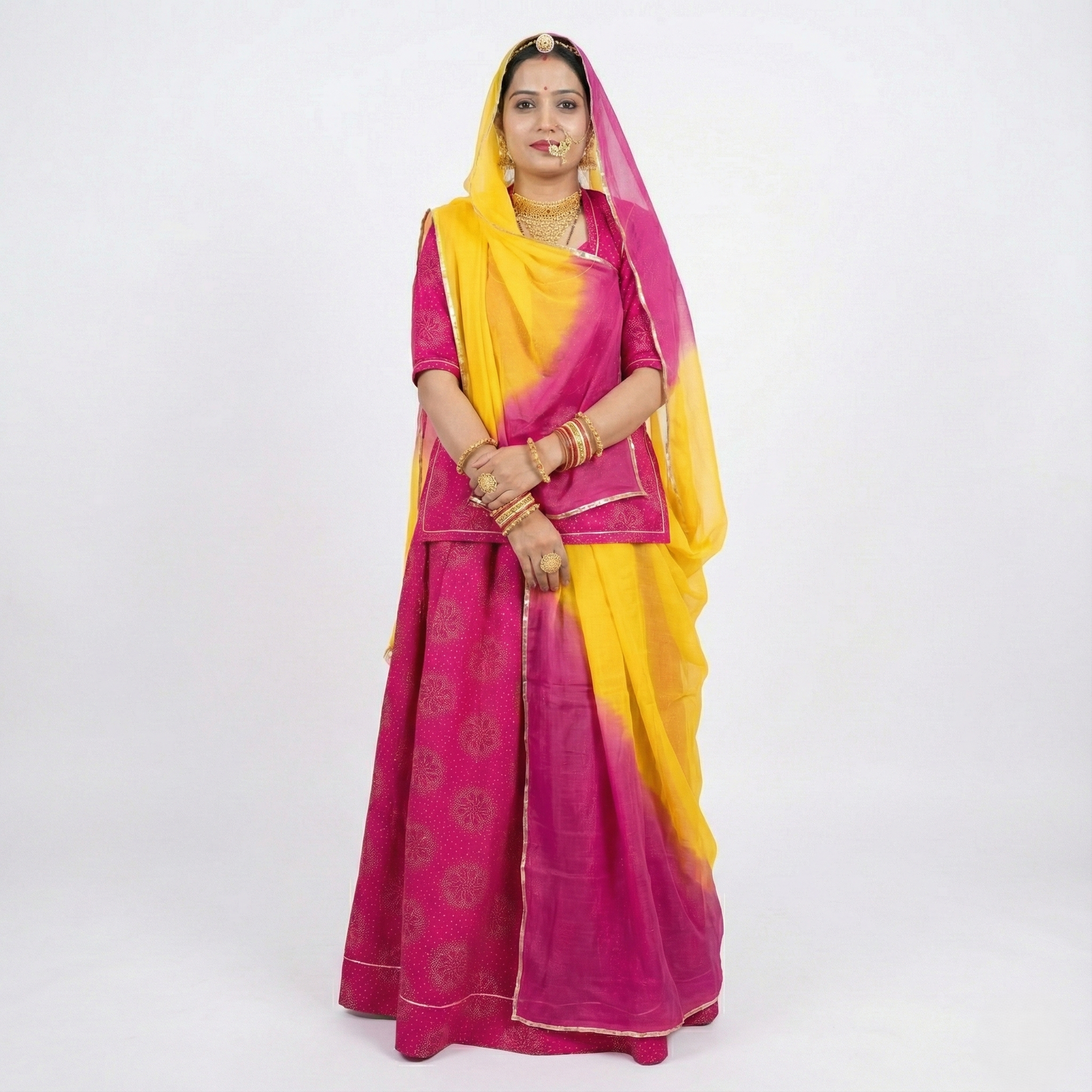 Exquisite Rajasthani Rajputi Royal Silk Suit Set with Sharabati Hand-Dye Odhani